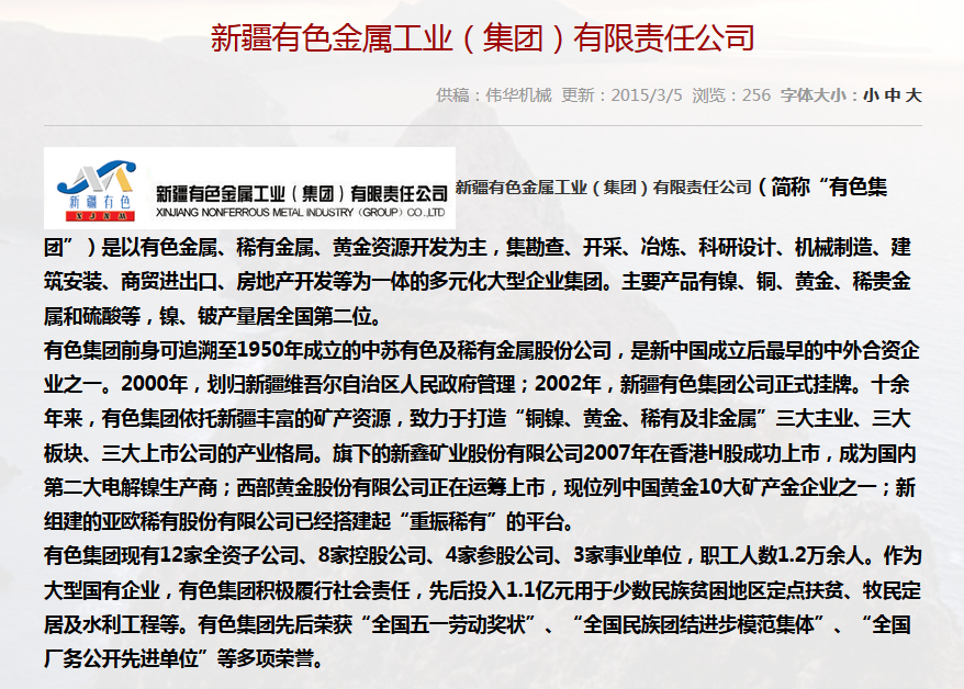 合作單位:新疆有色金屬工業(yè)(集團)有限責(zé)任公